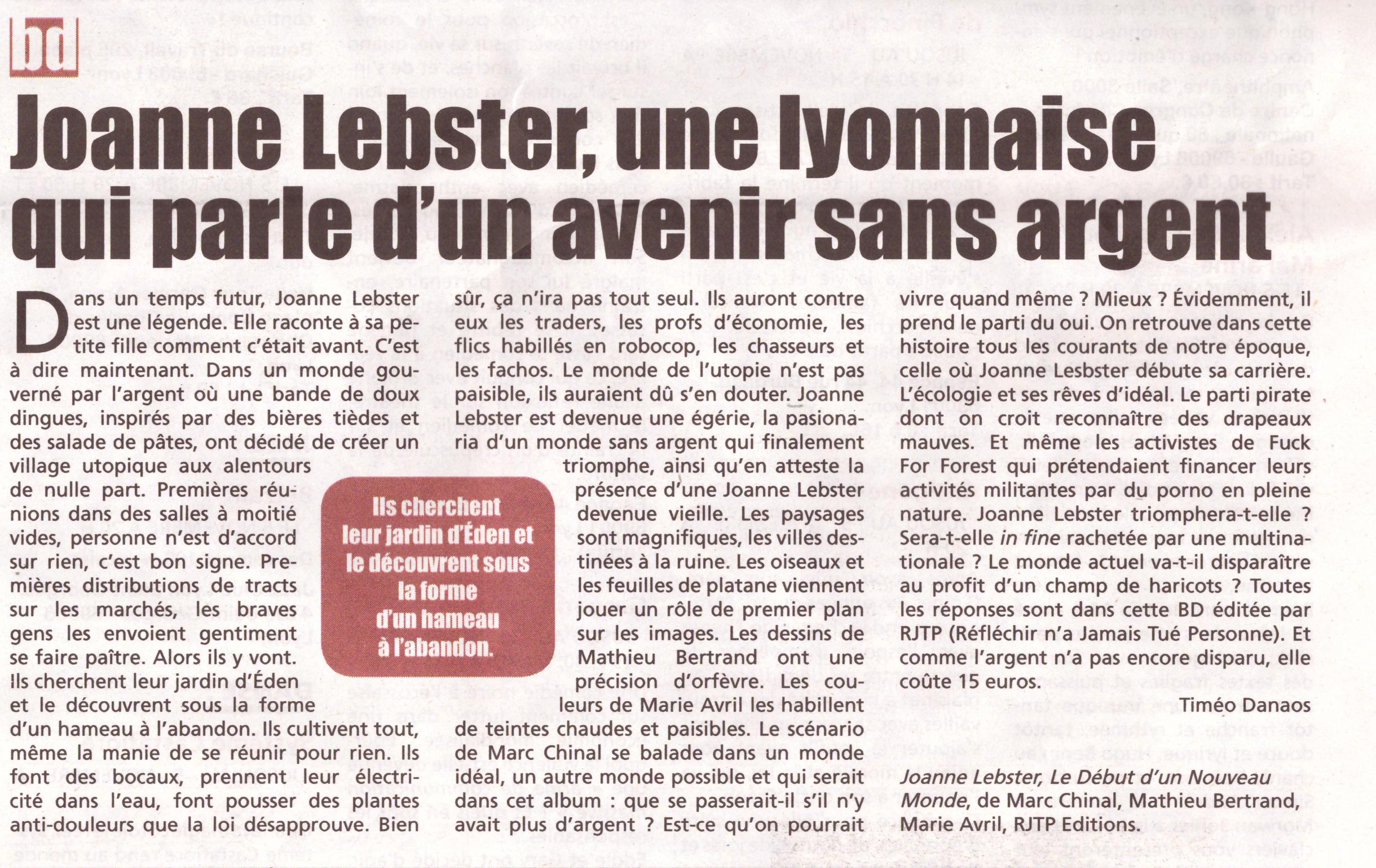 ____ vendredi 18 novembre 2016____ Un article qui parle de la BD sur le site LYONMAG.COM